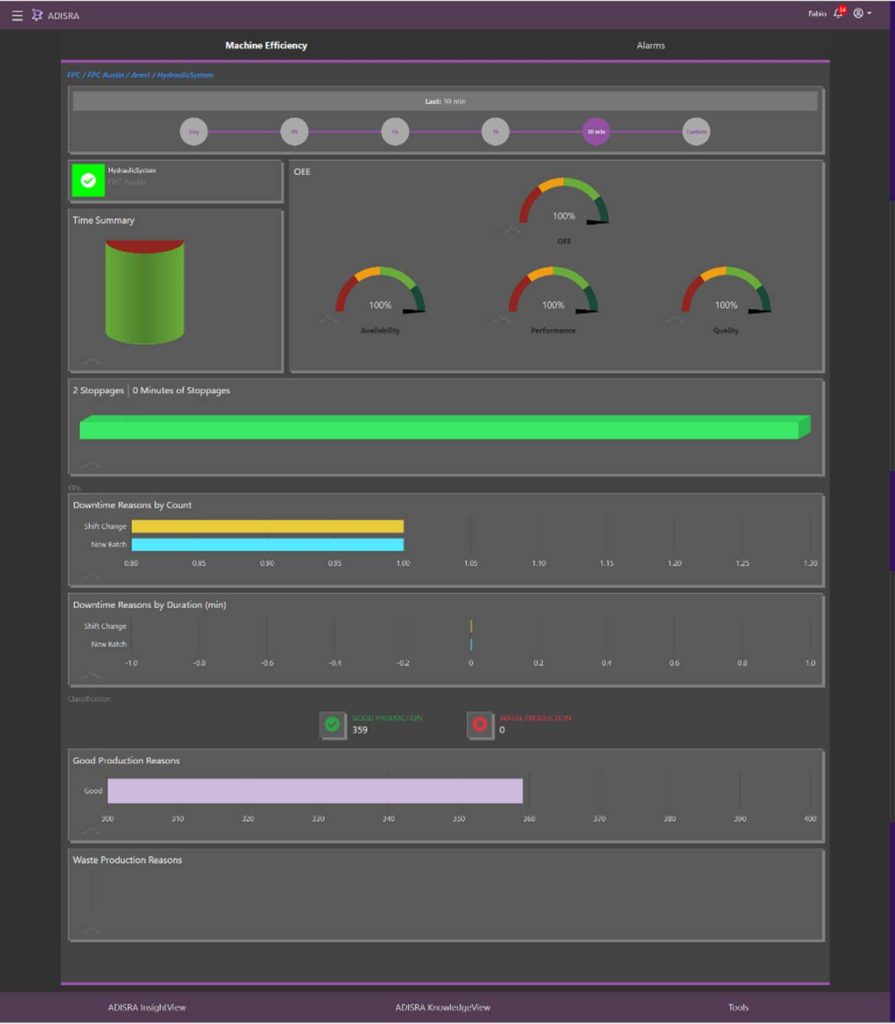 InsightView is a powerful yet intuitive analytics platform from ADISRA designed to transform production data into meaningful performance insights. It interprets machine and process data to measure productivity, providing key indicators such as Overall Equipment Effectiveness (OEE) and visibility into the Six Major Losses that impact operational performance.