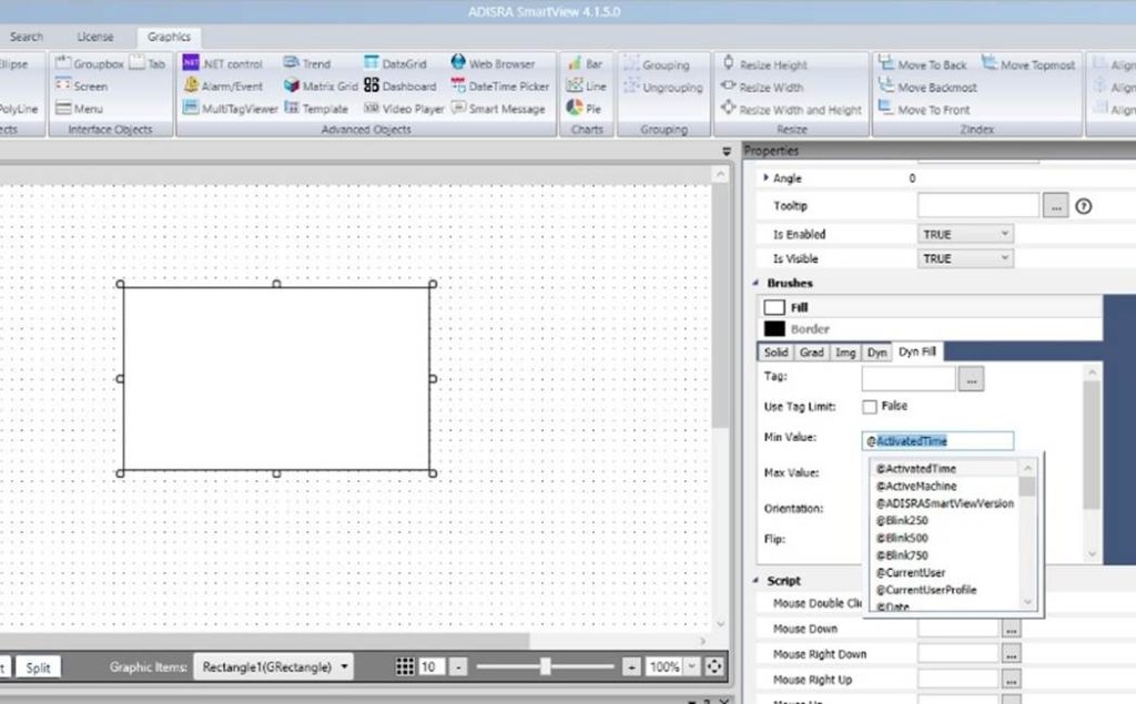 ADISRA SmartView now allows tags used in Dynamic Fill to be configured with explicit minimum and maximum values for ellipse objects, supporting angular, vertical, and horizontal orientations. This enhancement provides greater control over how live data is visually represented on graphics.