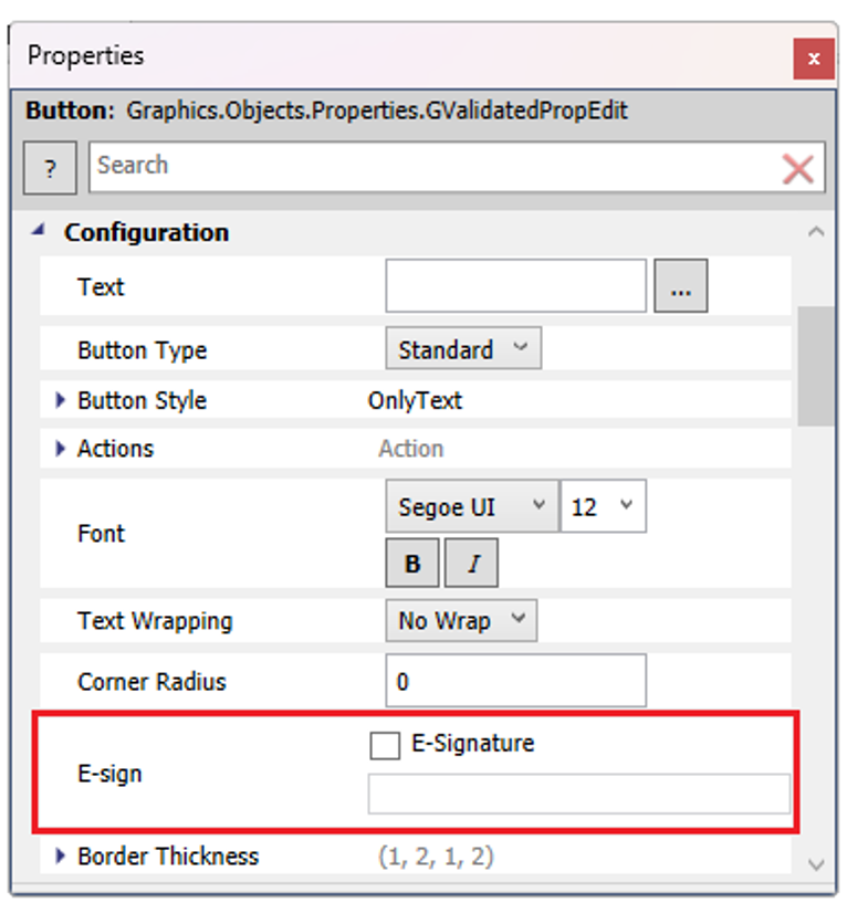 CheckBox: This option enables or disables the requirement for an electronic signature before the object can be interacted with or its action executed.