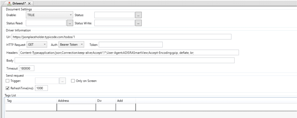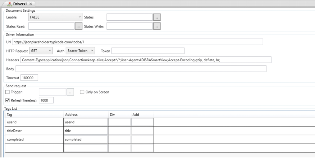 ADISRA SmartView includes a Web API driver designed to connect with external REST API servers. Web APIs enable communication between web servers, browsers, and applications over the internet. Among the different API architectures, REST (Representational State Transfer) is the most widely adopted due to its simplicity and scalability.