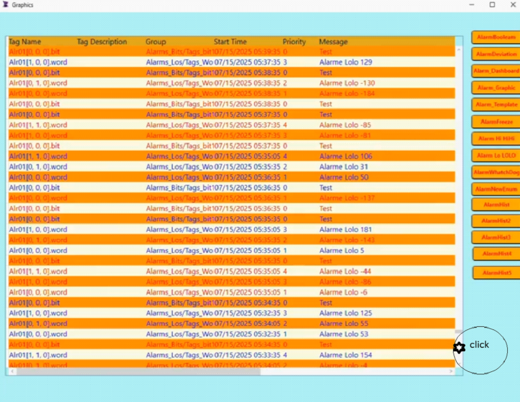 Enumeration alarms are particularly useful when integrating with external systems that represent alarms in different ways. Each enumerated value can be assigned a custom message, displayed in the alarm object, and stored in the database alongside traditional alarms. This ensures both internal and external events are captured, visualized, and managed consistently.